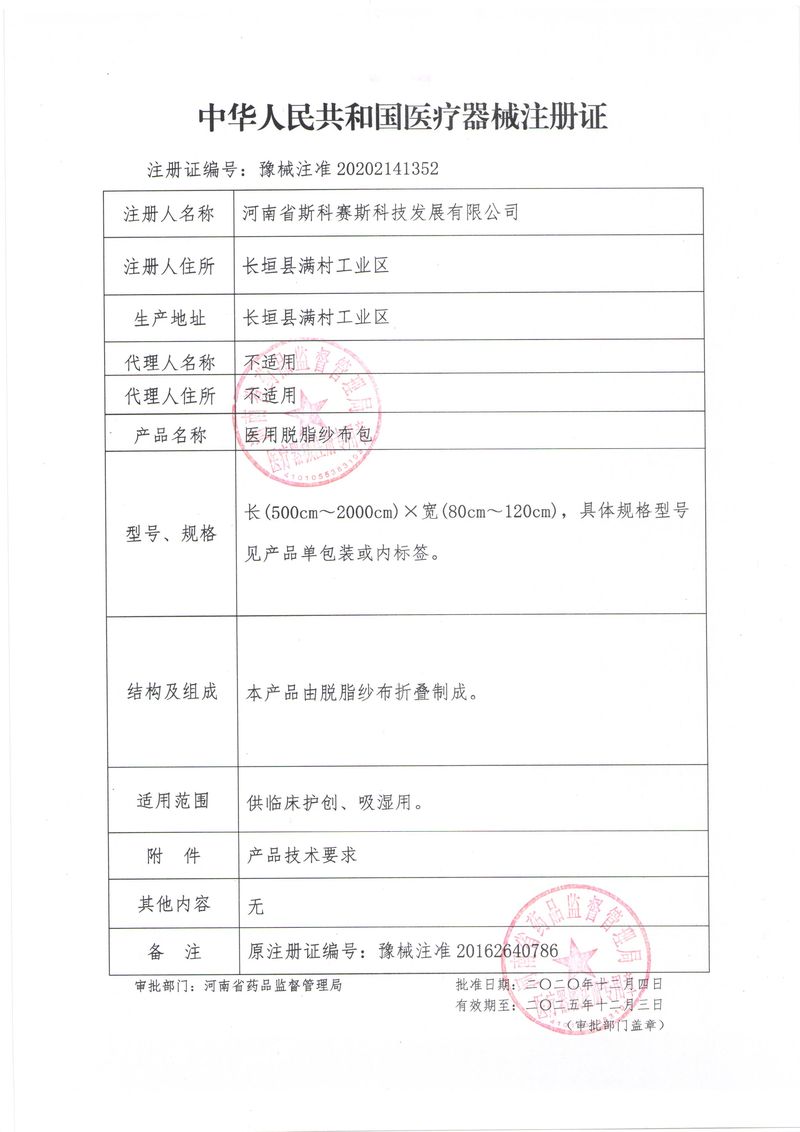 河南省斯科賽斯科技發(fā)展有限公司創(chuàng)建于 2011 年,位于“中國(guó)醫(yī)療耗材之都”- 河南省長(zhǎng)垣縣,西臨 308 省道,南靠新菏鐵路,北依長(zhǎng)濟(jì)高速,交通便捷,經(jīng)濟(jì)發(fā)達(dá),環(huán)境優(yōu)美。斯科賽斯積極進(jìn)入醫(yī)療健康和服務(wù)領(lǐng)域,秉承為用戶創(chuàng)造價(jià)值的理念,專注于醫(yī)用耗材解決方案的研發(fā)和運(yùn)營(yíng),并為用戶提供完善的產(chǎn)品解決方案;  斯科賽斯主要生產(chǎn)醫(yī)用麻醉系列、醫(yī)用高分子系列、醫(yī)用敷料包系列、醫(yī)用無紡布系列、醫(yī)用防護(hù)系列、醫(yī)用脫脂棉系列、生物材料制品類等七大類、100 多個(gè)品種、400 多個(gè)規(guī)格的產(chǎn)品。公司占地面積約 30000 平方米,建筑面積20000 平方米,擁有 10 萬級(jí)的凈化車間總面積 10000 平方米。擁有國(guó)際先進(jìn)水平的生產(chǎn)設(shè)備和檢測(cè)儀器,技術(shù)裝備精良,檢測(cè)手段完善,為醫(yī)療行業(yè)的不斷發(fā)展進(jìn)步提供保障。公司順利通過 ISO9001、ISO13485 質(zhì)量管理體系認(rèn)證?! ∷箍瀑愃箞?jiān)持研發(fā)高科技新產(chǎn)品,力爭(zhēng)在醫(yī)療器械關(guān)鍵領(lǐng)域取得技術(shù)和研發(fā)的重大突破;立足國(guó)內(nèi)和國(guó)際兩個(gè)市場(chǎng),逐步實(shí)現(xiàn)管理理念、經(jīng)營(yíng)機(jī)制、人力資源、技術(shù)、產(chǎn)品、市場(chǎng)等全方位對(duì)接,提高企業(yè)的核心競(jìng)爭(zhēng)力;過去的歲月里,斯科賽斯砥礪前行,誠(chéng)信務(wù)實(shí),銳意進(jìn)取,不斷創(chuàng)新,用自己的睿智和辛勞,以富有責(zé)任感的使命,在探索中追求,在追求中超越,致力于成為值得信賴的醫(yī)療用品生產(chǎn)企業(yè)!在未來的日子里,斯科賽斯將一如既往豪情滿懷,信心百倍,攜手并肩,執(zhí)著追求,向更高的的目標(biāo)前進(jìn),鑄造新的輝煌!